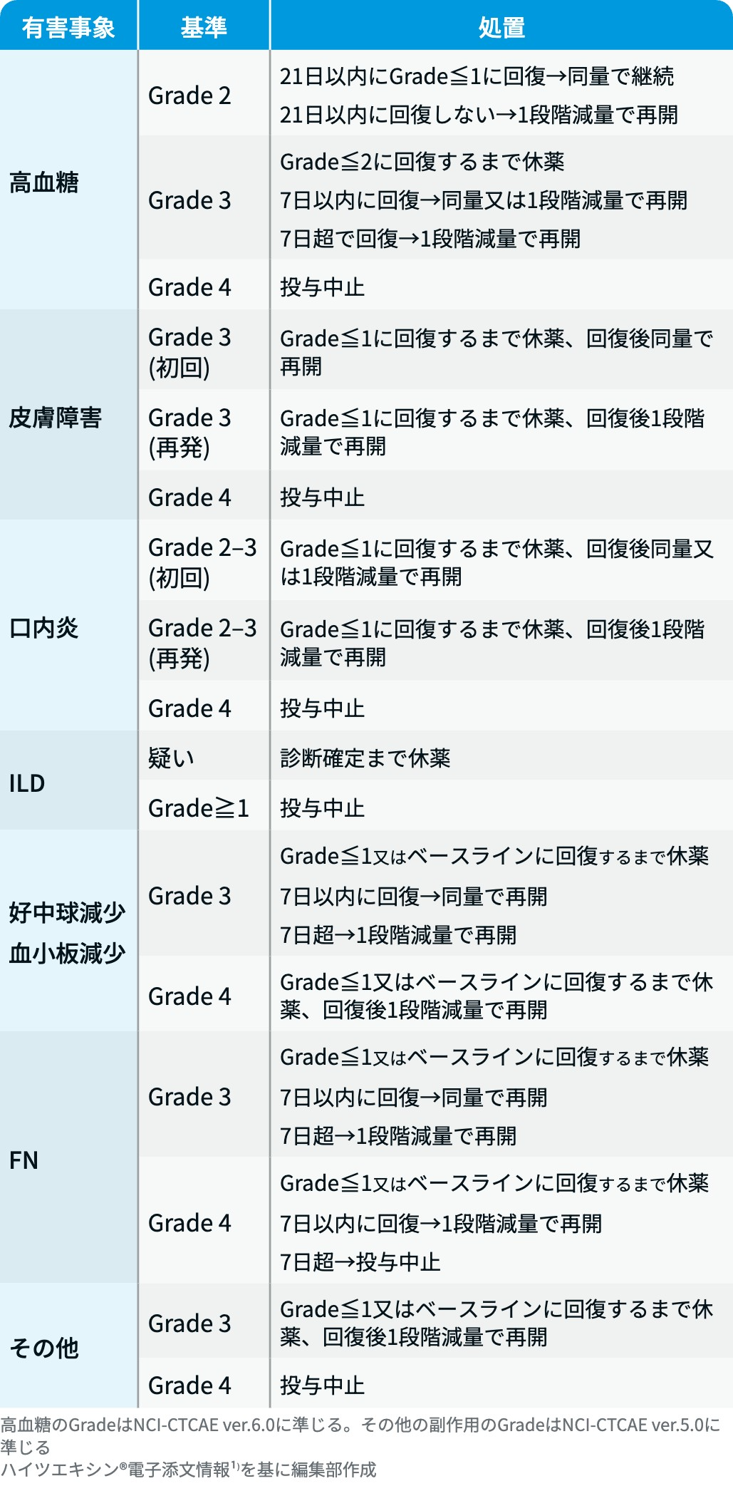 主要論文や適正使用ガイドをもとにした用量調整プロトコール、 有害事象対応をご紹介します。