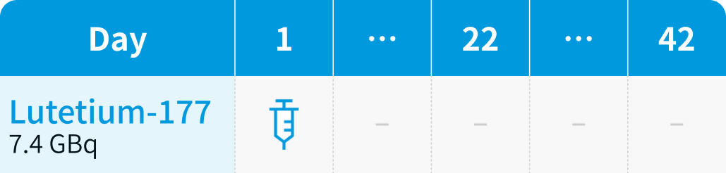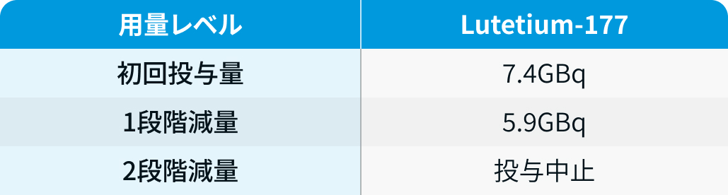 1回7.4GBqを6週間間隔で最大6回静脈内投与