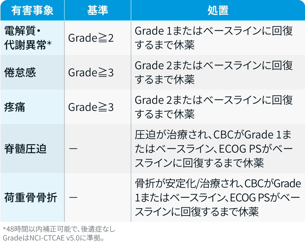 VISION試験³⁾では、 その他の有害事象への対応方法は以下のとおり定められていた。