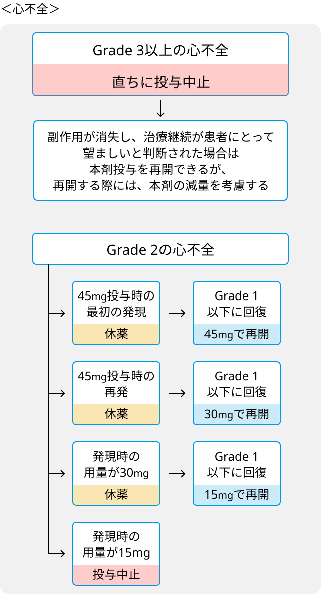 - 血管閉塞性事象又はGrade 3以上の心不全が発現した場合は直ちに中止.