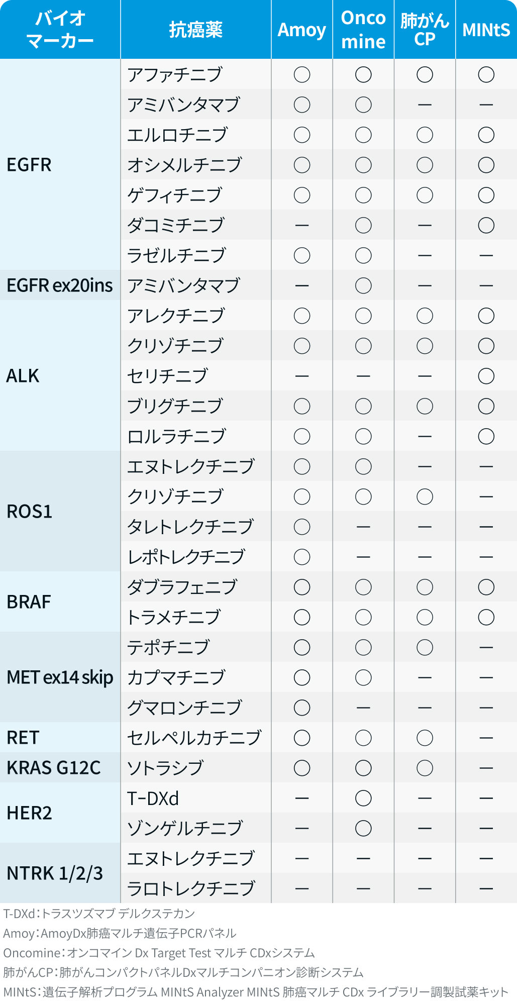 肺癌領域でCDxとして承認されている包括的がんゲノムプロファイリング (CGP) 検査は以下のとおり。
