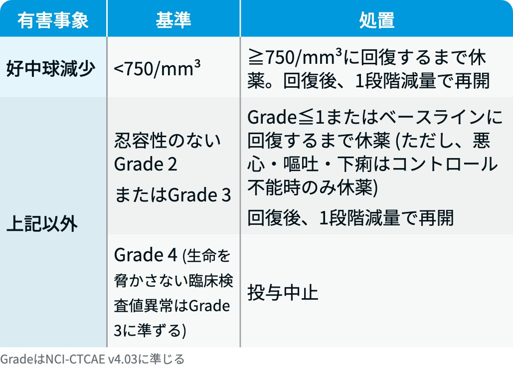 | 有害事象発現時の減量・休薬・中止基準は概要を参照. |