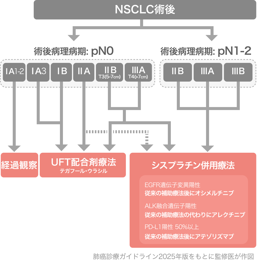 2022年8月にADAURA試験により 「術後補助化学療法」 としての使用が可能となった。 投与期間は最長36ヵ月であるため留意すること。